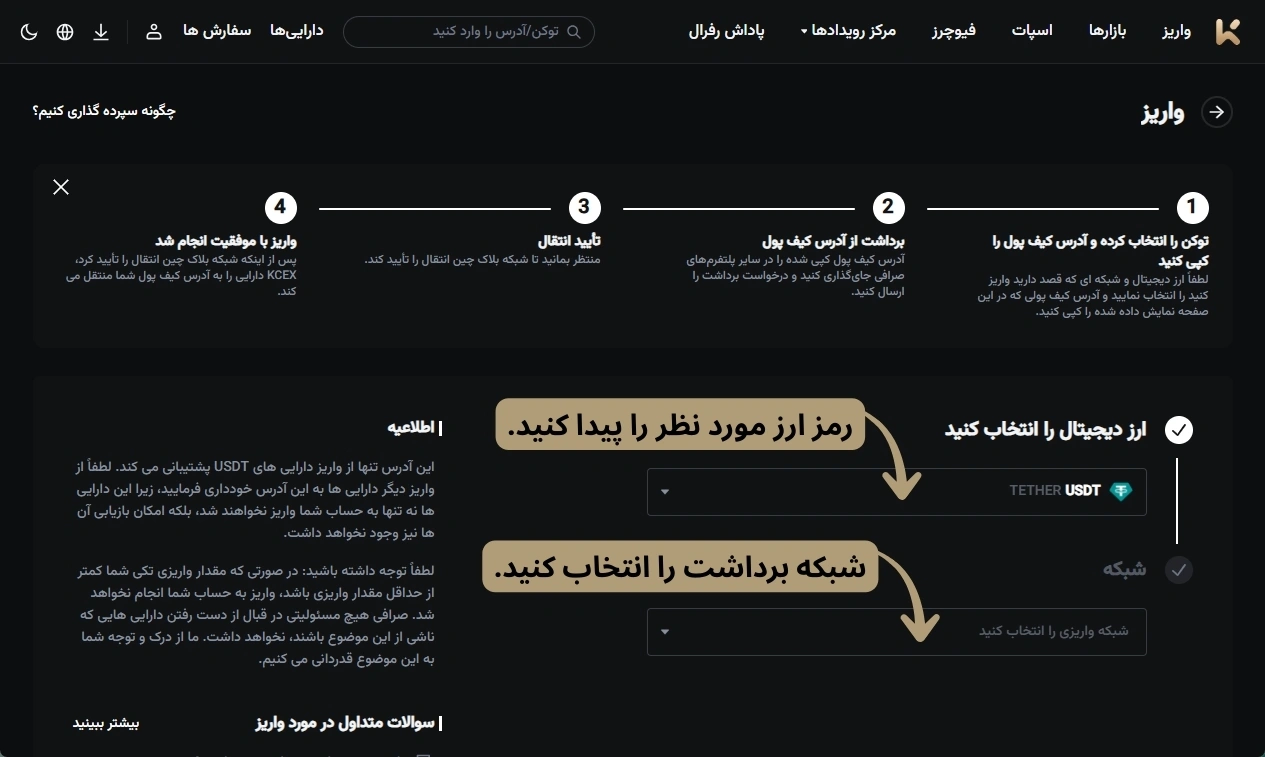 آموزش واریز در صرافی KCEX | راهنمای گام به گام