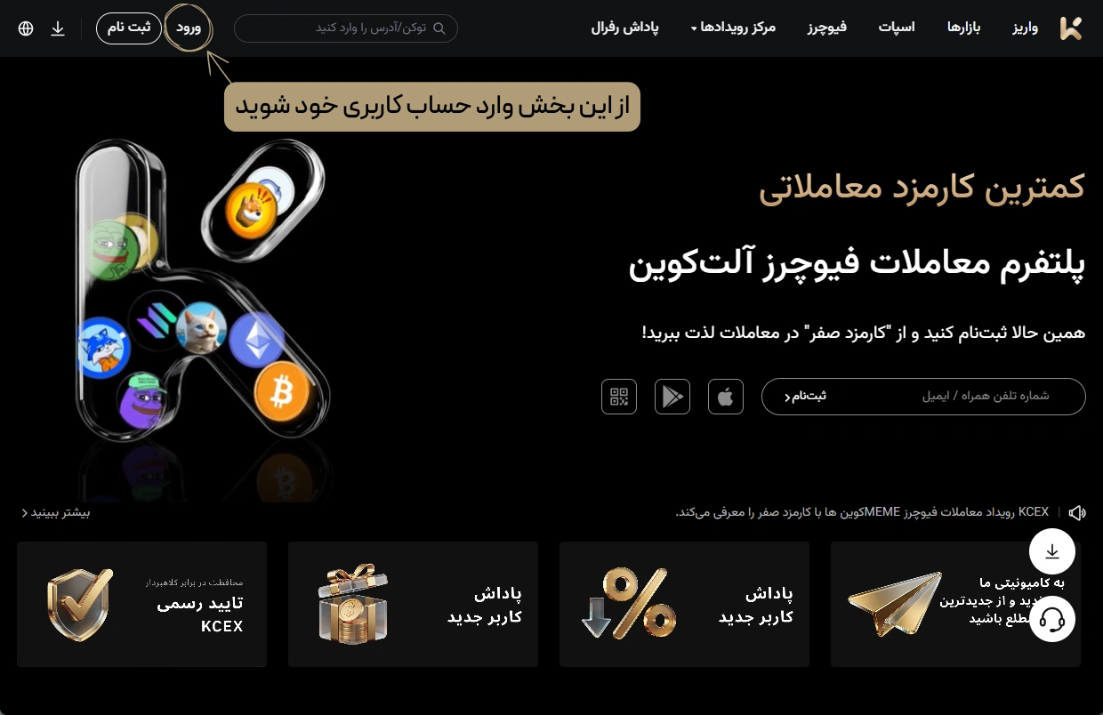 - برای پیدا کردن ممو در kcex ابتدا باید وارد سایت صرافی kcex شوید.